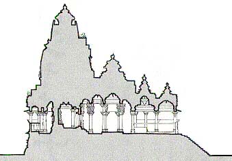 これらの圧倒的な迫力をもった寺院の最大の特徴を示す言葉は「山と洞窟」である。外観のシカラの連なりはヒマラヤの聖山カイラーサを模し、内部空間は組積造であるにもかかわらず石窟寺院のような性格となっていることは、断面図からも見てとれるだろう。そもそも本尊が安置される「ガルバグリハ」というのは「胎内」を意味する言葉であるから、インド人にとっての寺院建築のイメージは常に「山と洞窟」にあったのである。
