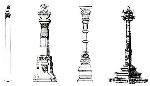また建築というのは、それが外来の文化である場合には(イスラム建築のように)その建築造形が一種の記号性として表れてくるが、その地で生まれ育った文化の場合には、宗教の違いよりも気候風土への対応や技術の方が形の決定要因になるのだということを、これは示している。我が国の場合でも、もしも仏教が日本で生まれた宗教であったなら、神道の神社と仏教の寺院とは、基本的に同じような建築となった筈である。 そうした基本形の上に立って、宗教のちがいによる建築造形や構成の一定の好みというものも生まれてくる。チトルガルの塔はいずれも「スタンバ」と呼ばれているが、実は「スタンバ」というのは「柱」、それも主として記念柱を意味する言葉である。それは古代では主に仏教によって立てられ、アショーカ王によって各地に立てられた石柱が特に有名である。その伝統を最もよく受けついだのがジャイナ教であって、南インドのジャイナ寺院は必ずといってよいほど、寺院の前にスタンバ(*2) を立てる。