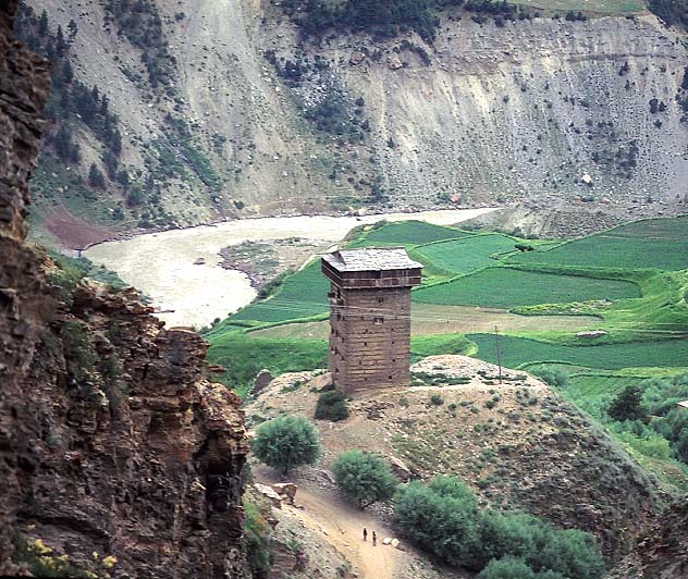 ゴンドラーの町の 古い要塞を鳥瞰する。 かつては周囲に低層部があったが、すべて失われてしまった。 (参考) 1912年当時の ゴンドラーの要塞 (From C.G. Bruce : Kulu and Lahoul, 1914, London)