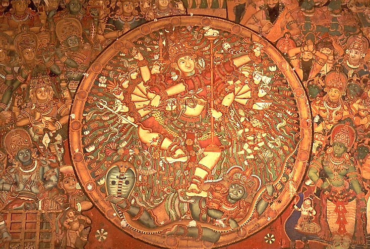 Nataraja (a dancing Shiva), a fine wall painting in the Kerala style in the Mahadeva Temple at Ettumanur, 17th century.
