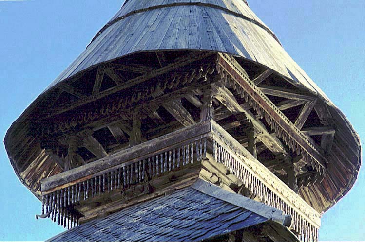 パラーシャル湖のほとりの パラーシャル・リシ寺院、木造の円錐屋根と 小屋組み
