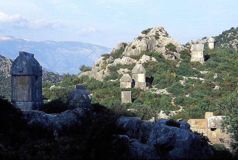 Lycian Sarcophagi scattered on the hill of Simena.