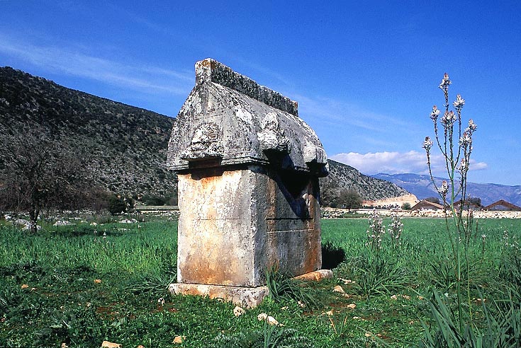 A sarcophagus with carved lion heads and a ridgepole, Sura, 4th century, B.C.E.