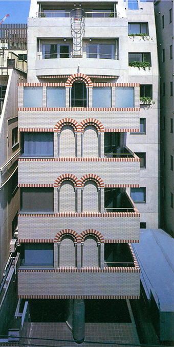 正面外観。 下4層が貸し事務所、上3層がオーナーの住居。