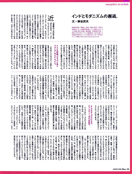 『 カ-サ・ブルータス 』という雑誌が 2005年3月号で、「そろそろインドに呼ばれてみませんか」という特集をするので、原稿を書いてほしい、インタビュー記事も載せたい、と前年12月に言ってきました。12月17日に編集部の 高木氏が来宅して1時間半 打ち合わせ、12月30日に 副編集長の松原亨氏よりFAX、明けて1月7日に松原氏と高木氏が来宅して2時間近く打ち合わせ、1月11日にEメールで原稿依頼状が届きました。その冒頭部分は、