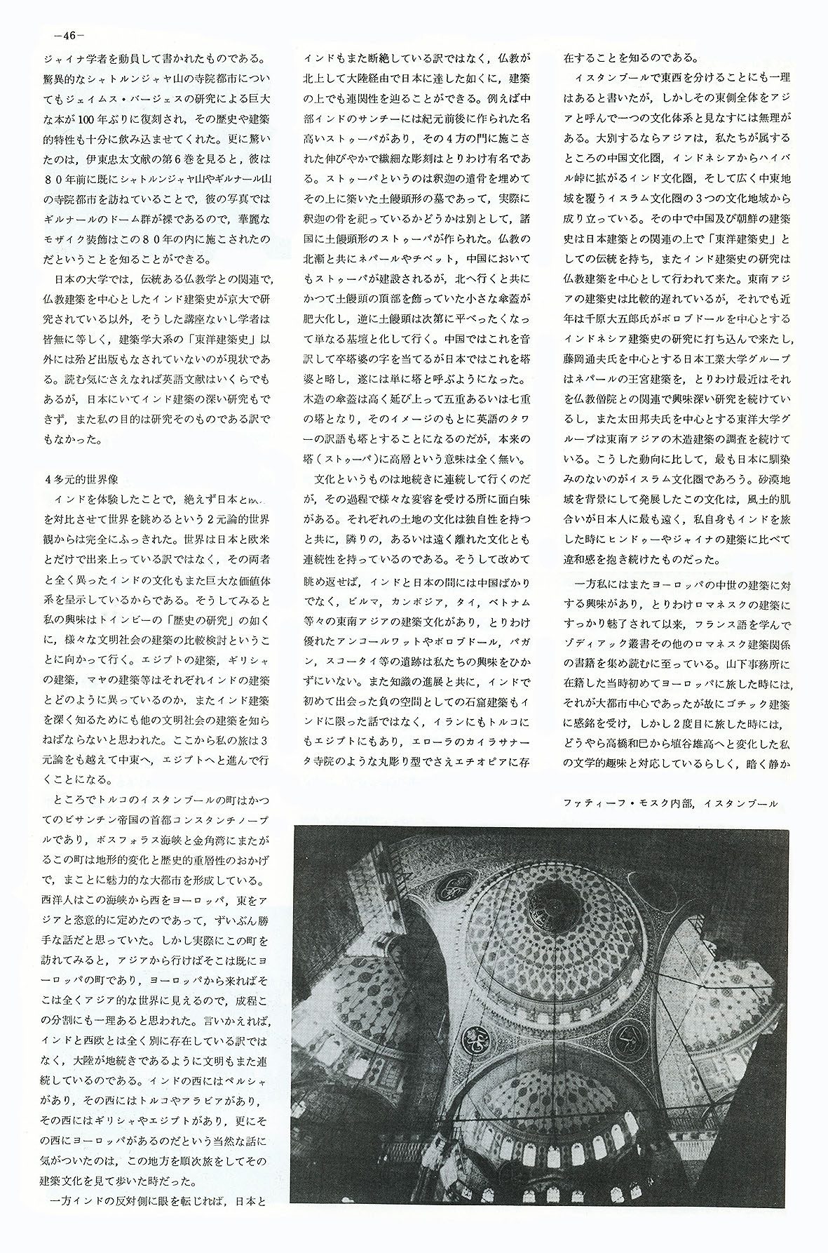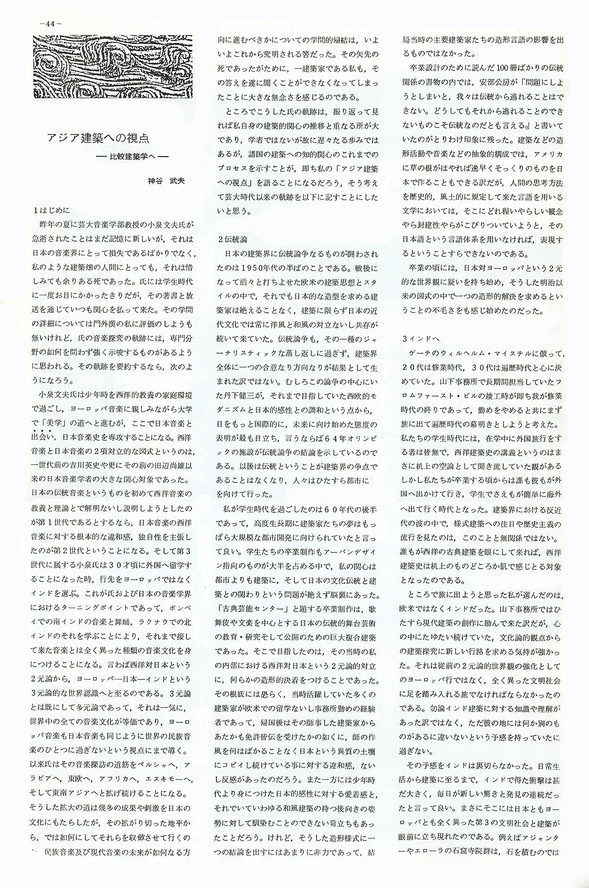 東京芸術大学 建築科 学生機関誌 『 空間 』 第7号 1984年 特集 「 アジア 」 44〜47ページ 「 アジア建築への視点 」 神谷武夫
