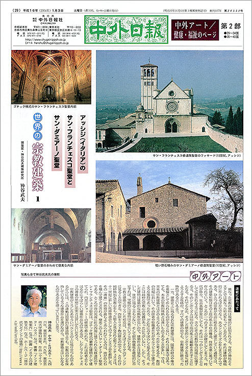 ● 『 中外日報 』という明治時代から続く日刊の宗教新聞に「中外アート」という欄があり、2004年1月から 月に1回、「世界の宗教建築」という1ページの記事の連載をし、キリスト教やイスラム教、ヒンドゥ教、ジャイナ教など、さまざまな宗教の建築を採り上げました。