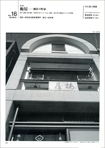 『 建築設計資料 』 第19号「店舗併用住宅ー商住建築」 1987年 冬号 108-113ページ「梅屋ー横浜の町家」
