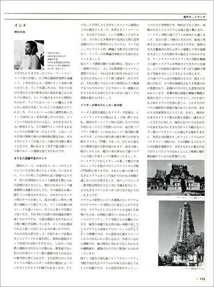 神谷武夫 3年半 かかりきだった+「フロム・ファースト・ビル」の竣工を機に、山下和正建築研究所を退職して、1月半ばから3カ月間の インド方面の旅行に出ました。インドを選んだのは、今までの自分を含めた 日本の 欧米志向に 抵抗を感じはじめたのが理由で、インドの旅は まさにその期待にたがわず、アジアには ヨーロッパに優るとも劣らない文化が存在していたことを 実感させてくれました。タイとネパールの 各1週間を除いて、インド国内に2ヵ月半を費やしたのですが、インドという国は あまりにも広く、また あまりにも古い歴史をもち、その期間でインド中をまわるというのは無謀であったようです。とはいっても、仕事の関係で 旅の出発時期が限定され、また4月からインドは夏となって 旅行不可能の暑さとなるので、限られた2ヵ月半で 最大限インドを駆け巡って 建築を見てきたわけです。