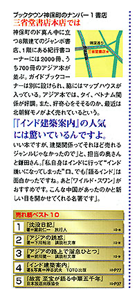 こちらは そんなことは知らないので、いつまでたっても載らないのを不審に思っていたら、2週間後の 10月29日の夕方になって 梶原さんから電話があり、 『 インド建築案内 』の紹介は、木曜日の朝刊の 12面、住宅のページに