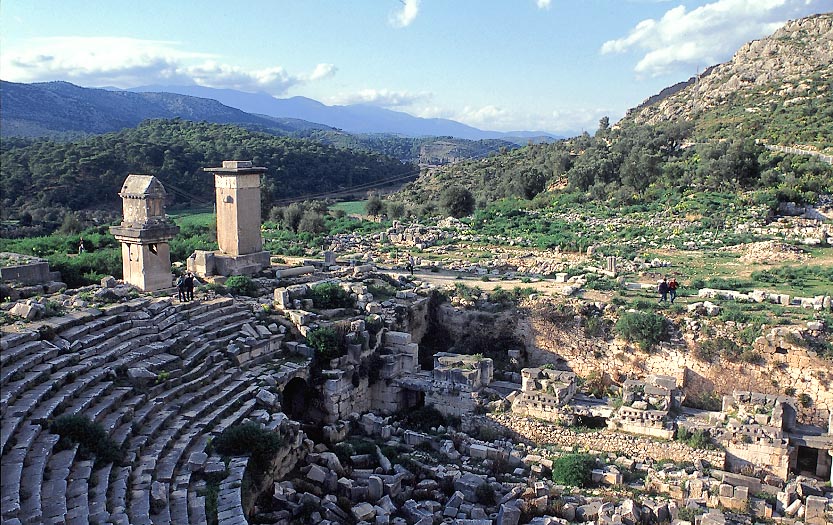 リュキア時代の石棺や塔墓とローマ時代の劇場、クサントス