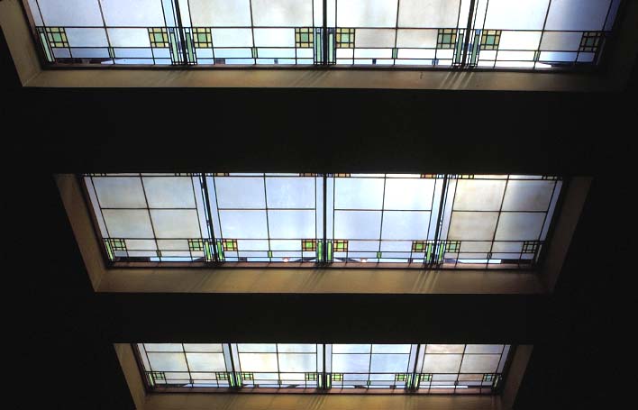 ユニティ・ハウスの天井、ライトがデザインしたステンドグラス。