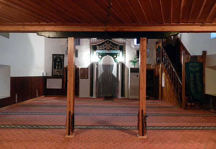 ハスコヴォのエスキ・モスク。 女子用の中 2階の下から、ミフラーブとトルコ風ミンバルを見る。