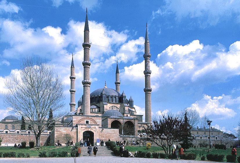 手前側は、シナンの弟子の ダウト・アーが設計した バーザール。 モスクを維持するための収入源となった。
