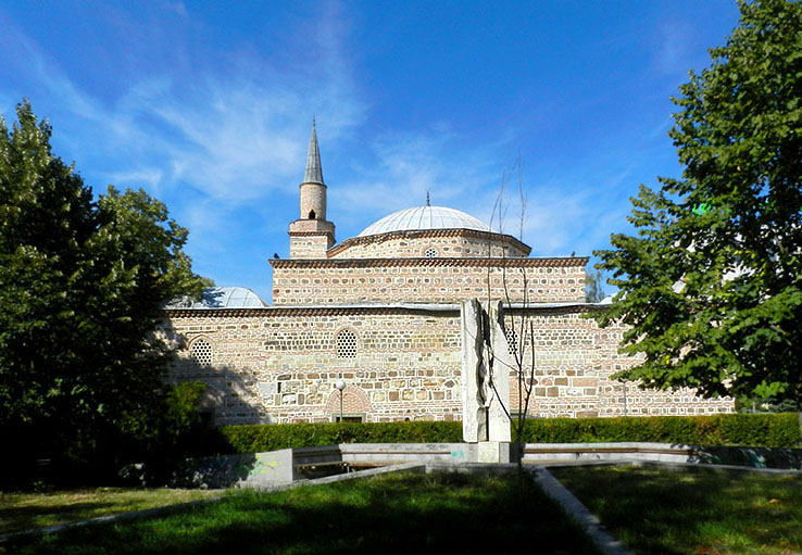 ヤンボルのエスキ・モスクの背面。 手前に見えるのは、現代彫刻。